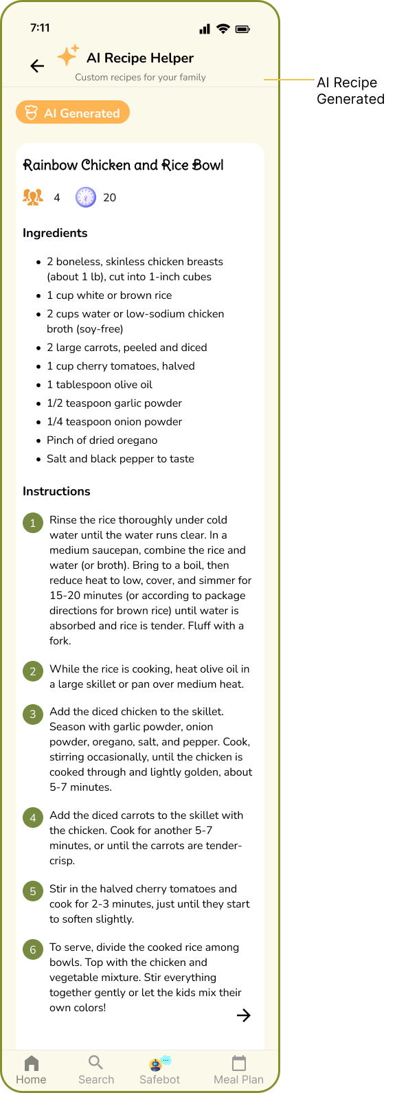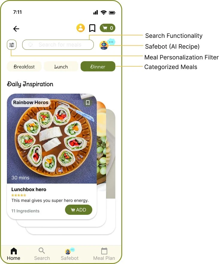 By integrating clear meal categories, personalized filters, search functionality, and AI-powered recommendations, Safeats transforms mealtime from a source of stress into a moment of confidence and connection.