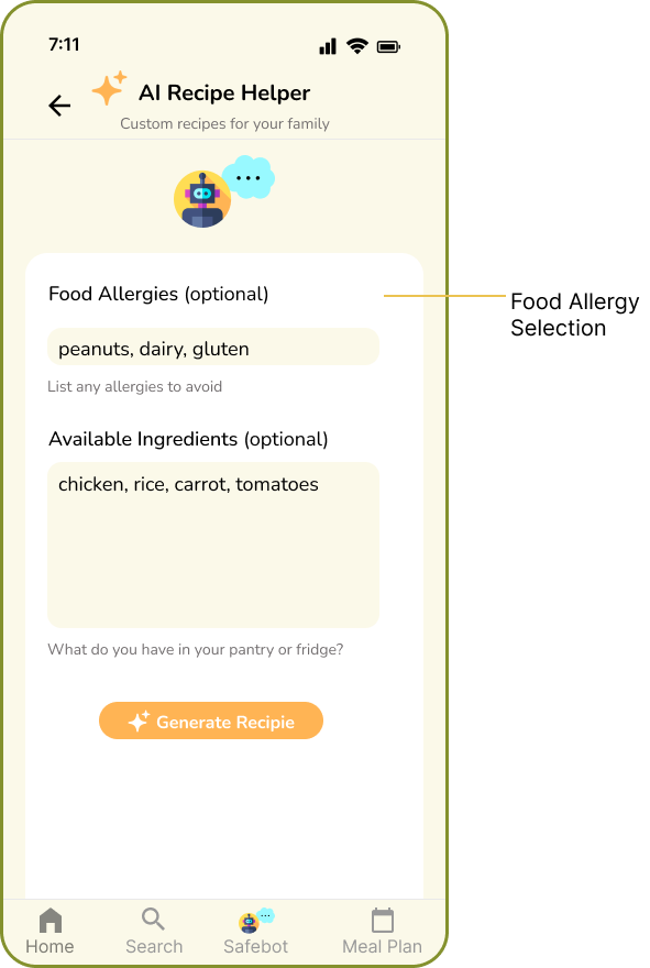 From the feedback I received, several key improvements were identified to make Safeats even more intuitive and kid-friendly. These updates help Safeats become even more supportive, organized, and personalized—making allergy-safe meal planning simpler and more enjoyable for families.