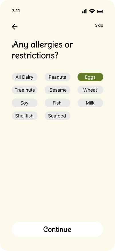 From the feedback I received, several key improvements were identified to make Safeats even more intuitive and kid-friendly. These updates help Safeats become even more supportive, organized, and personalized—making allergy-safe meal planning simpler and more enjoyable for families