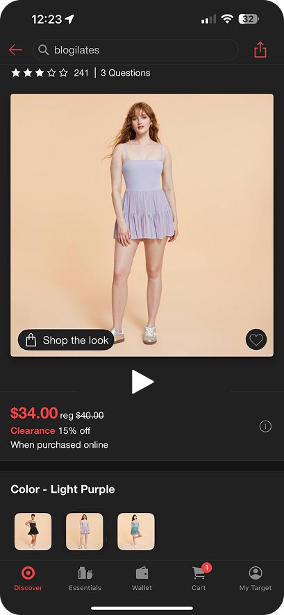 As a regular Target shopper, I realized the play button on apparel pages suggests a catwalk video, but instead only displays a slideshow of photos. This missing video experience prevents shoppers like me from seeing how the outfit truly moves and fits, making size selection harder and less reliable. The gap not only affects shopper confidence but also contributes to avoidable dissatisfaction and product returns—revealing a clear opportunity to enhance the Target online shopping experience.