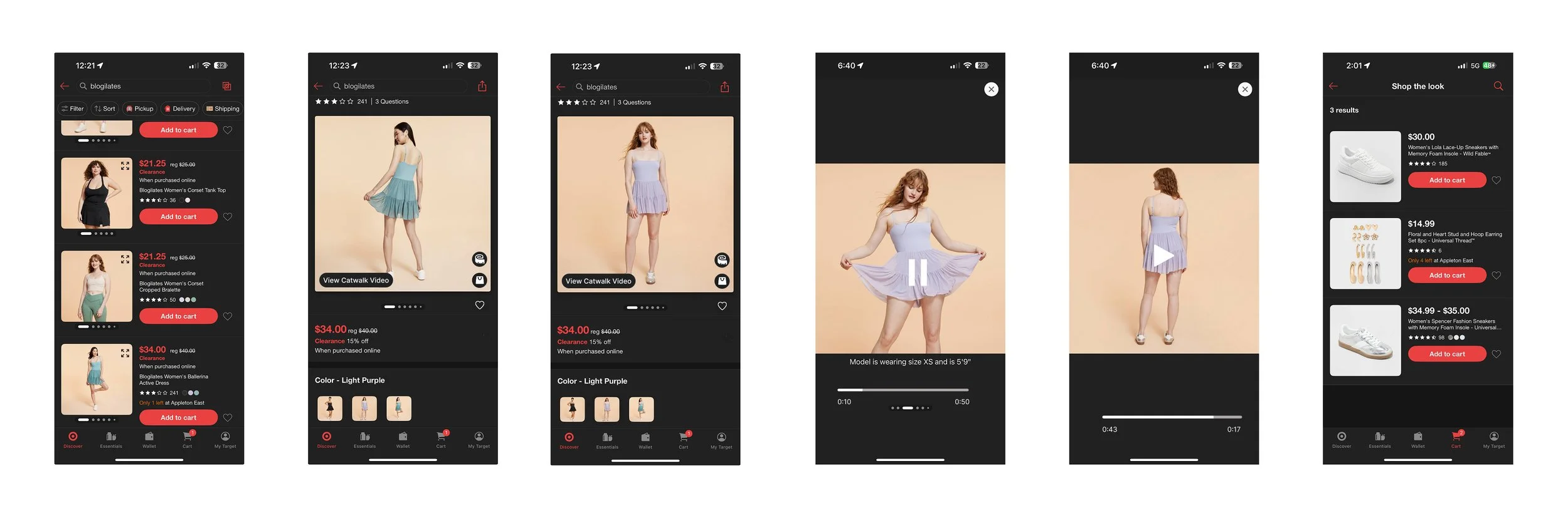 I re-introduced a “Shop the Look” icon next to the catwalk video controls, allowing users to instantly explore and purchase the full outfit worn by the model. This creates a seamless transition from viewing the product in motion to discovering complementary items, supporting both user inspiration and Target’s cross-selling strategy.
