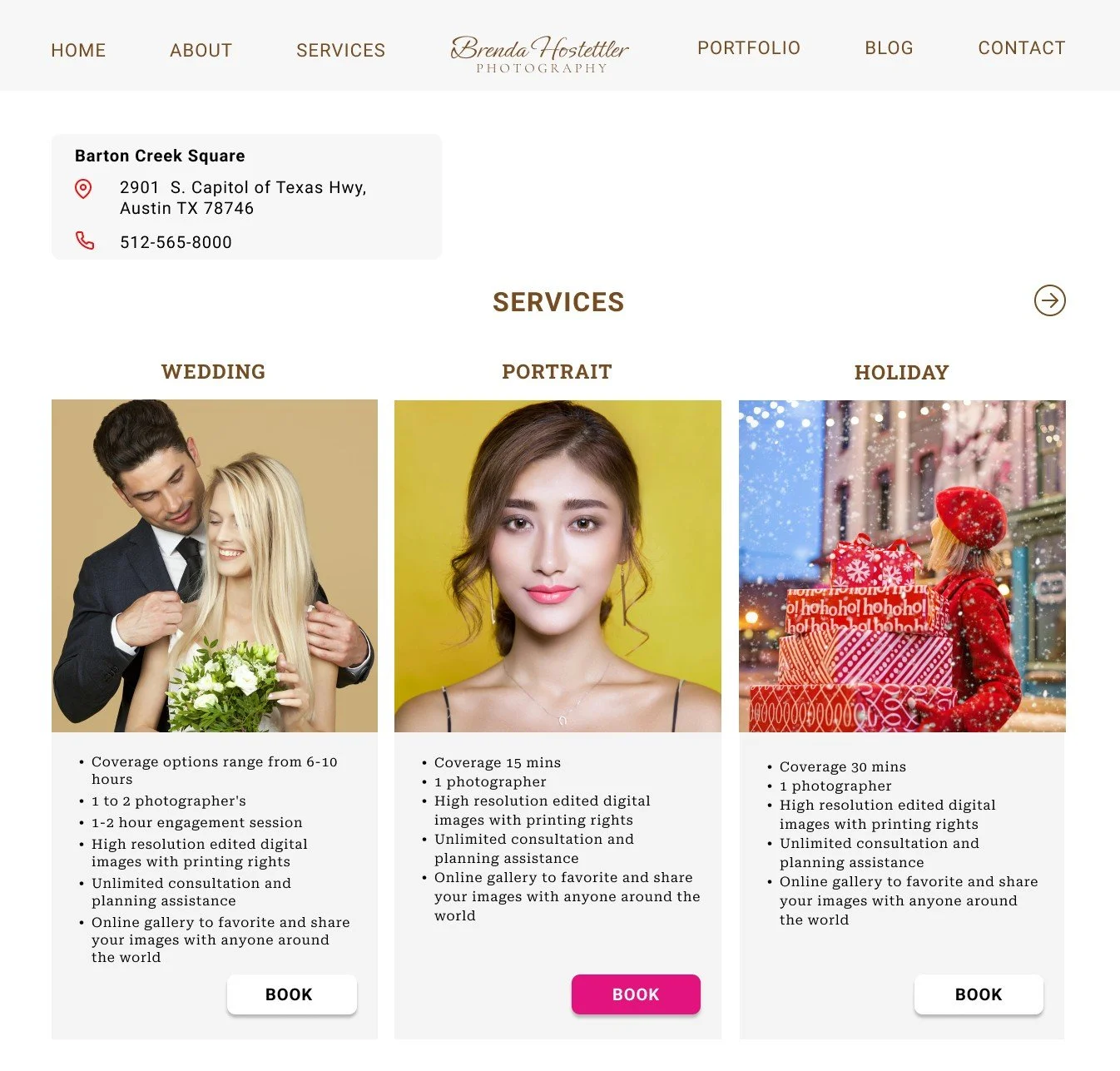 These insights guided my redesign for Brenda Hostettler Photography, focusing on simplifying navigation, improving clarity, and creating a streamlined booking process that makes scheduling intuitive and stress-free.