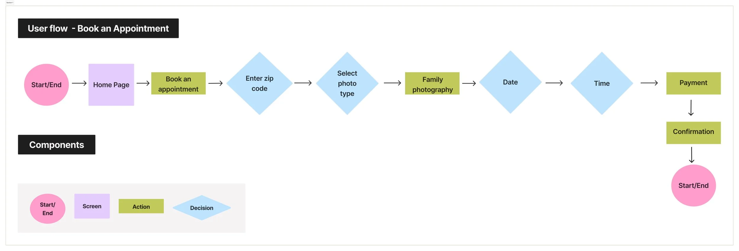 This user flow was intentionally designed to support busy, detail-oriented clients like Dave by making booking straighforward, predictable, and stress-free. By reducing unnecessary steps, clarifying decisions, and providing immediate feedback, the flow improves confidence and aligns the digital experience with the professionalism of the photography service.